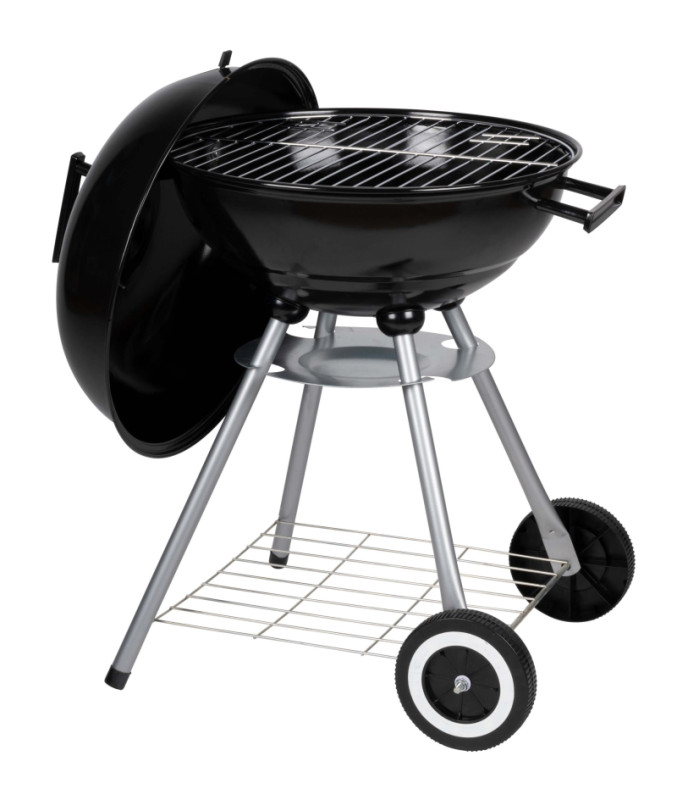 Praktický okrúhly gril s pokrievkou a rukoväťou. Ideálny na grilovanie vonku.
