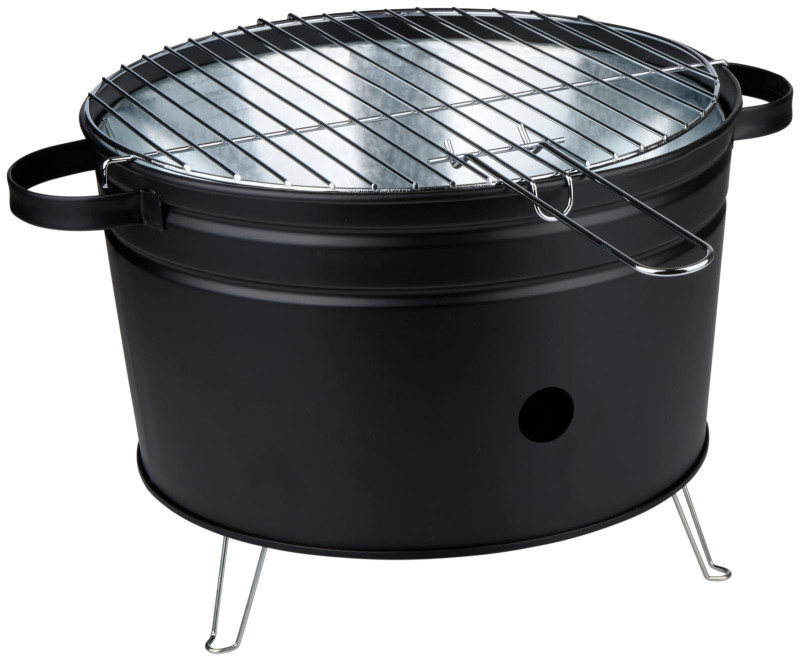 Prenosný gril na drevené uhlie, ideálne na grilovanie v záhrade alebo na balkóne. Pripravený na použitie, ľahko sa čistí a prepravuje.