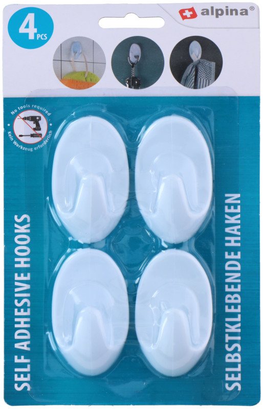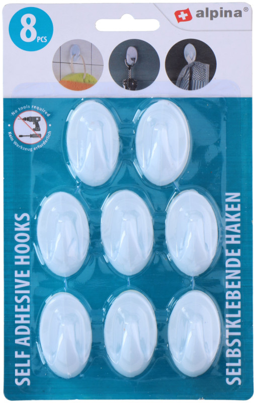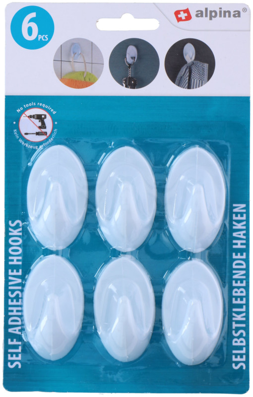 - Háčiky nástenné samolepiace ALPINA oválne 4/6/8ks biele