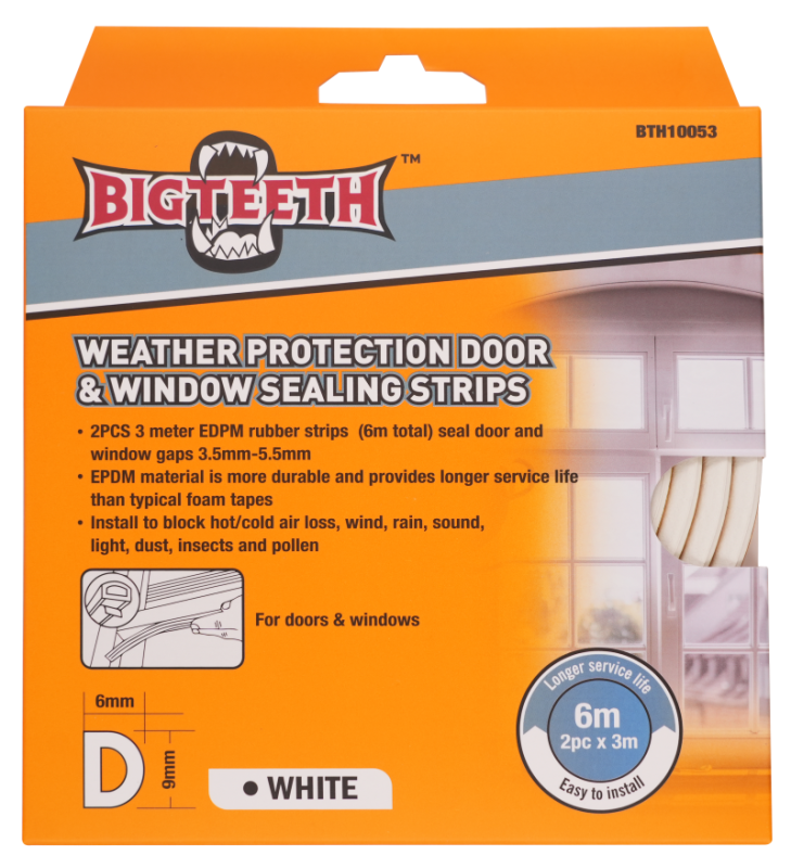 Tesnenie na dvere a okná, typ D, biele 2ks 3m (BTH10053)