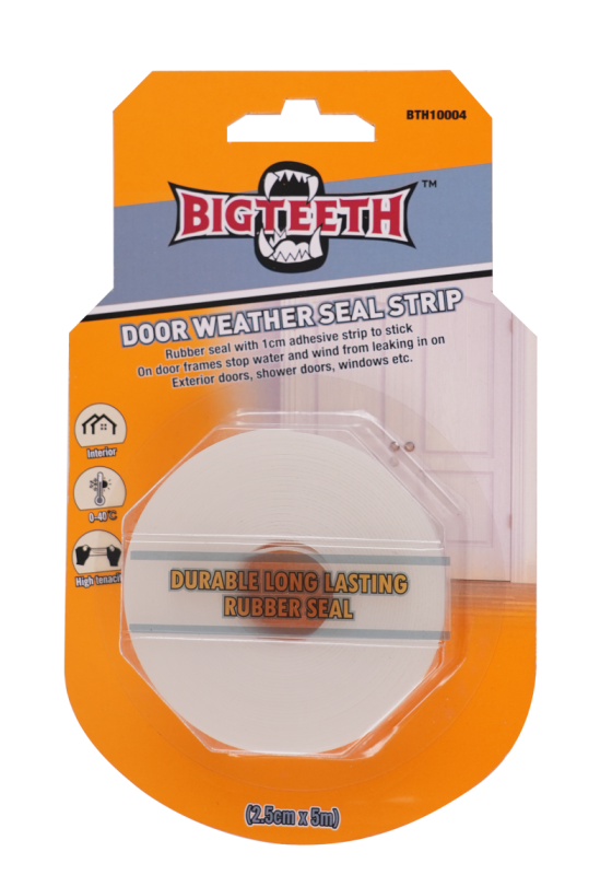 • Gumové tesnenie s 1 cm lepiacou páskou na nalepenie na zárubne bráni zatekaniu vody a vetra do vonkajších dverí, sprchovacích dverí, okien atď.