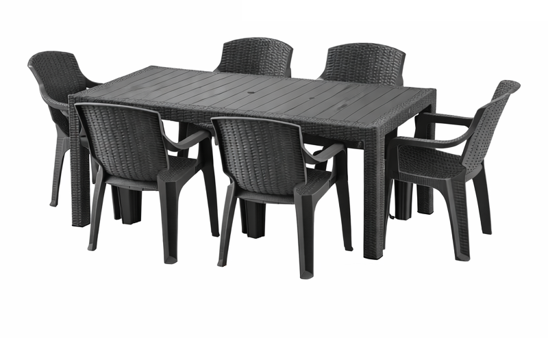 Záhradný nábytok set stôl 90x150 cm + 6 stoličiek antracit