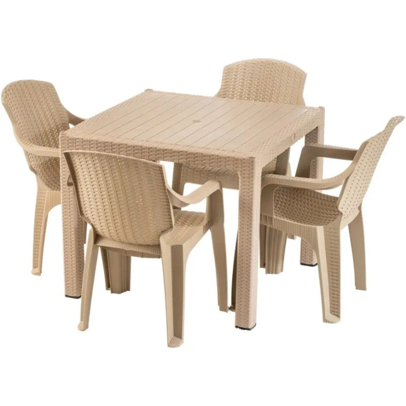 Záhradný nábytok set stôl 90x90 cm + 4 stoličky béžový